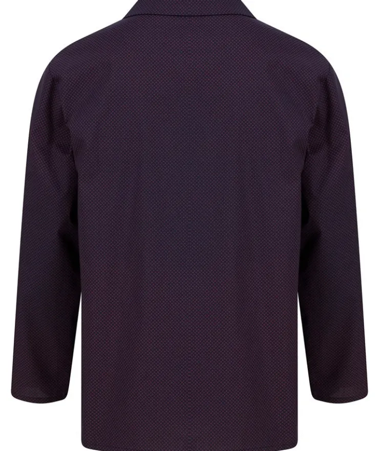 A smart tailored matching pyjama set. Complete with a single breast pocket to the left as worn and a fly opening to the trouser. The set is designed in a navy with a small red diamond/geo print all-over making for a modern men’s pyjama that is perfect for the colder months.