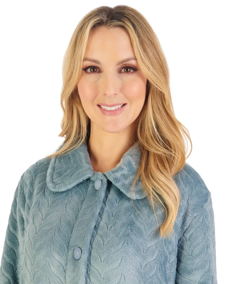 This housecoat features an embossed pattern, made from soft fleece, and crafted with 100% polyester for maximum comfort. With a length of 46″, long sleeves, and a convenient button-through design, this housecoat also includes 2 concealed pockets for convenience.