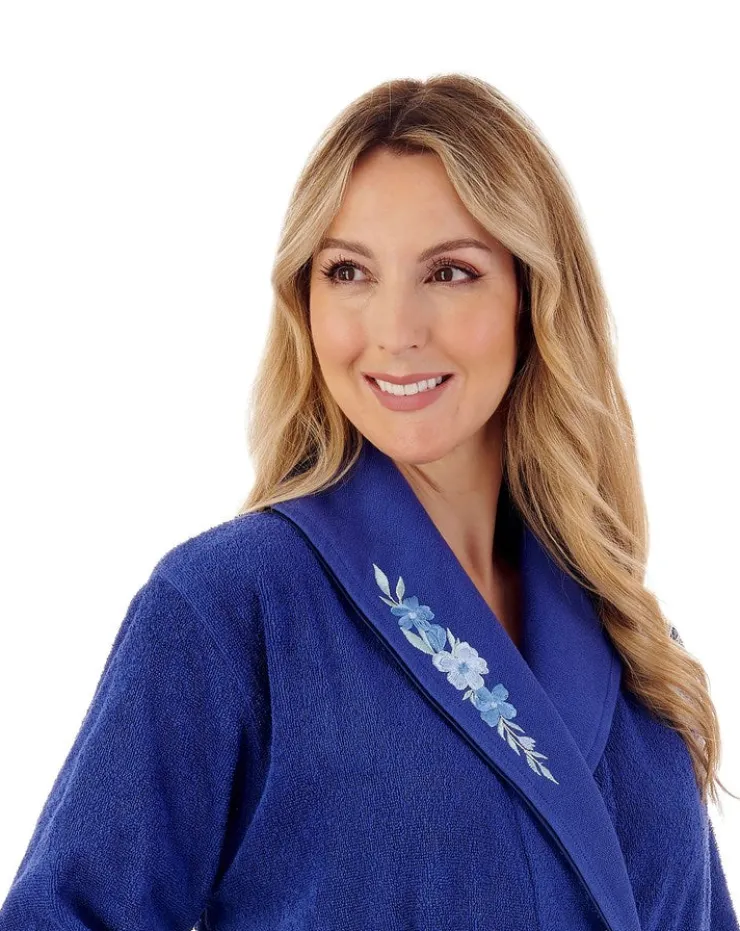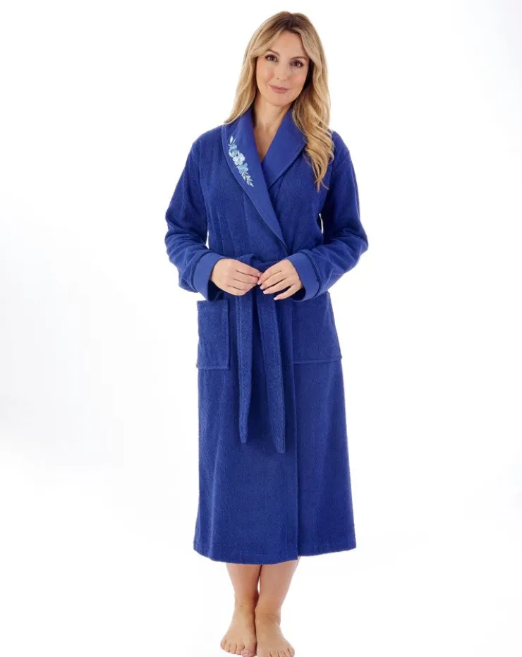 A classic style housecoat with a belted wrap opening for ease with dressing. The 100% cotton terry towelling has a thick pile which gives a heavy and luxurious feel, perfect for the extra warmth you need in those cold months.