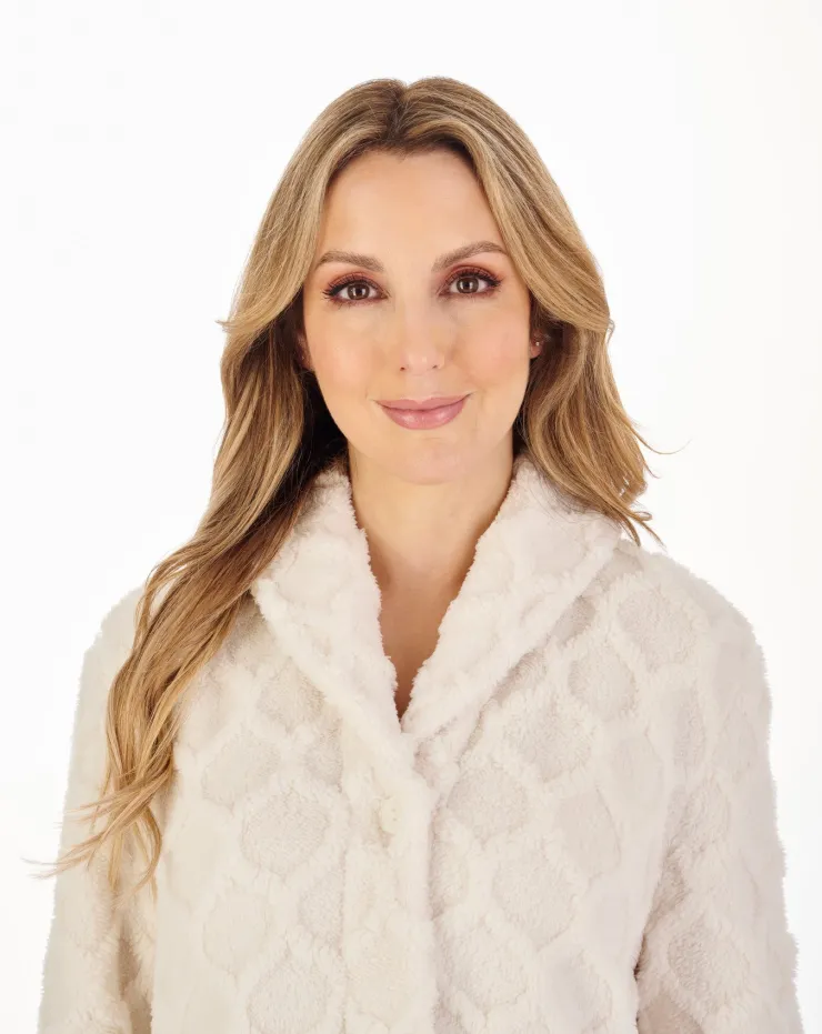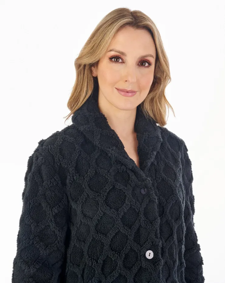 Wrap yourself in the luxurious warmth of our Honeycomb Texture Button Through Housecoat. Its honeycomb style is designed to keep you comfortable and cosy all autumn and winter long. The button-through front and two front patch pockets adding timeless sophistication to its style. The small shawl collar and 100% Polyester Fleece provide the perfect finish to this truly exquisite piece.