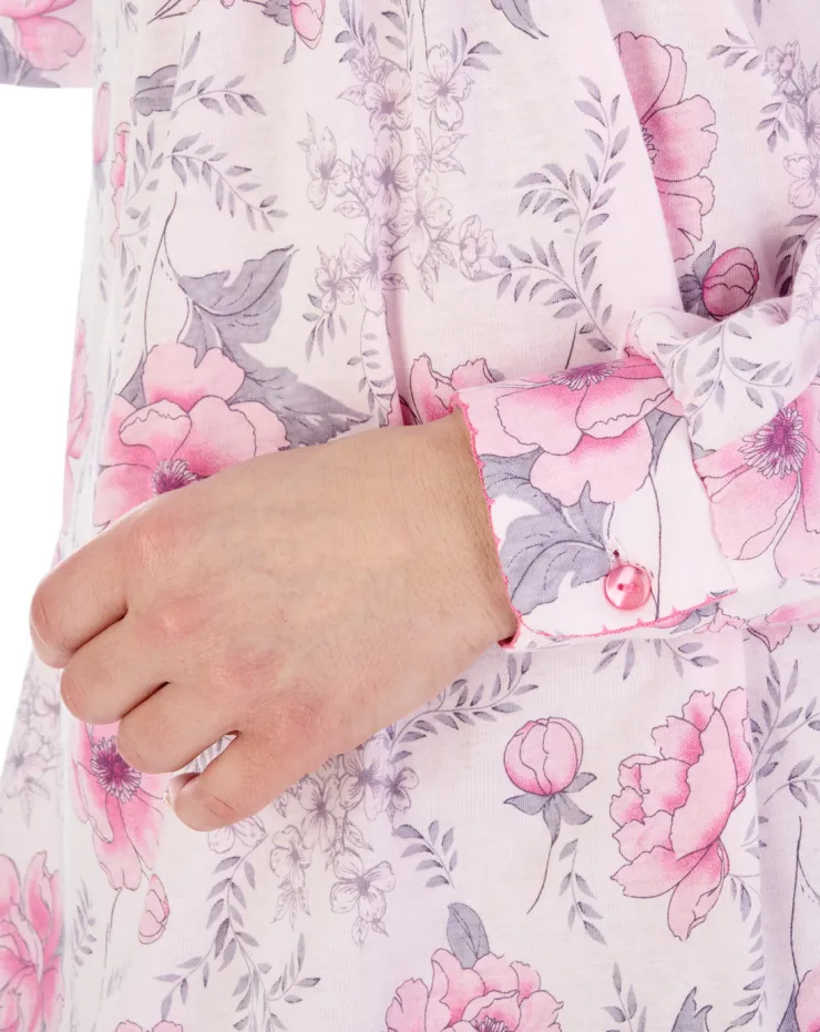 Relax in luxurious comfort with this 50″ Picot Trim Jersey Nightdress. Crafted from pure 100% cotton jersey, this nightdress boasts a sumptuous feel that provides a comforting night’s sleep. The nightdress features long sleeves complete with a buttoned cuff, round neck, picot trim detailing, and a 3-button front yoke for ease with dressing, ensuring you stay warm and comfy all night.