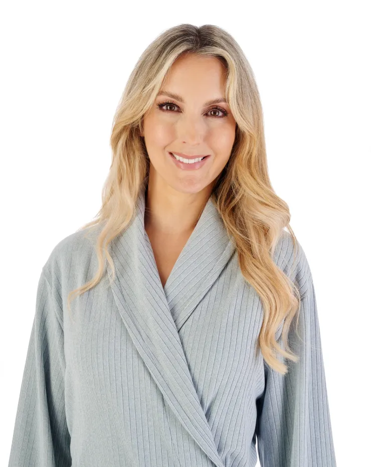 Featuring a flattering textured rib pattern, this wrap style is made from 100% polyester fabric giving it a soft and comfortable feel. With long sleeves and a shawl collar to provide extra warmth, the style is finished with two front patch pockets for convenience.
