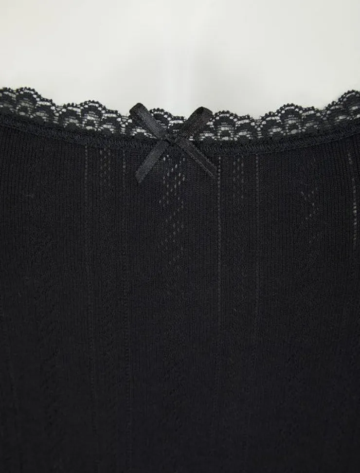 A classic styled camisole designed in a brushed thermal fabric for warmth and comfort, ideal to wear under clothing in the colder seasons. Designed with a french neck and in a seam free design, this garment is ideal for everyday wear providing a comfortable fit. With knitted soft fibres in the fabric, it creates an extremely flexible and durable garment. Designed with a delicate pattern all over, the style is finished with fine lace edging to neck and straps with pretty bow to centre of neckline.