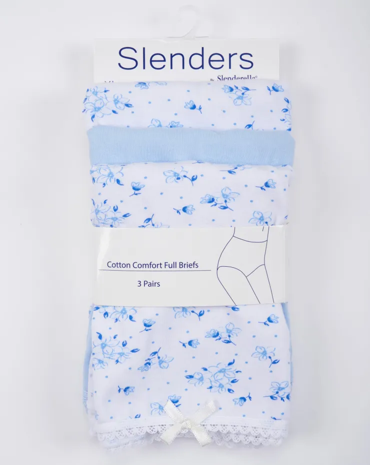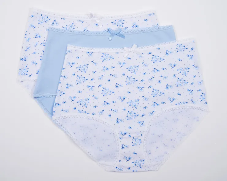 This 3 Pack Cotton Comfort full briefs set comes with two femininely patterned briefs and one plain design. Made in a cotton rich fabric, the briefs have an elasticated waist which creates an extremely flexible and durable garment, ideal for everyday wear. Enjoy full coverage and comfort with these briefs.