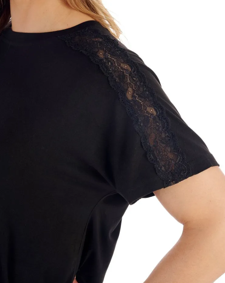 A beautiful super soft cap sleeve nightdress that is designed in three stunning print options. Finished with a broad laced sleeve panel detailing and a round neck. The drape on this garment is lovely and the smooth fabric is soft and adds a little extra warmth during the cooler months. Perfect to style with the matching kimono wrap, see GL02704 for the kimono.