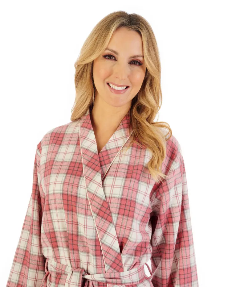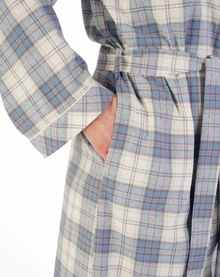 This wrap features a soft brushed texture, yarn dyed for lasting color and a classic check pattern. Made of 100% cotton, it offers ultimate comfort with a 40″ length and long sleeves. The kimono wrap style, complete with cuffs and satin piping, adds a touch of sophistication to any outfit.