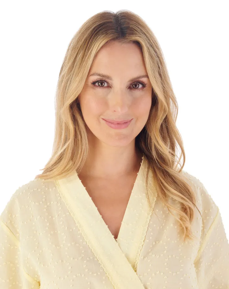 A perfect lightweight kimono wrap for the warmer months. Why not make it a nightwear set with our matching Dobby Dot nightdress and pyjama sets.