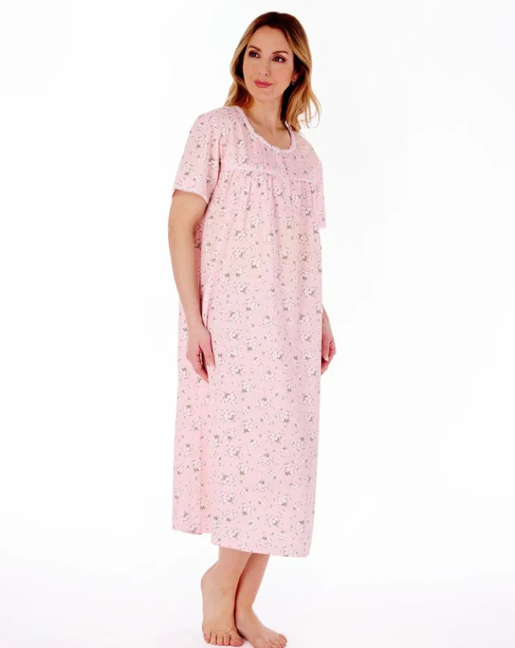 Our lightweight cotton daisy print cotton nightdress is designed with short sleeves and finished with a laced neck, sleeve and front yoke with a vertical pintuck for that classic look. Complete with 4-button plackets for ease with dressing.