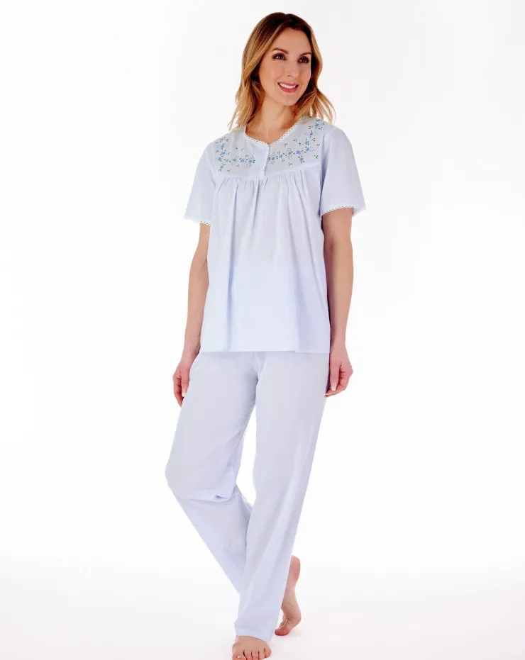 Slenderella Embroidered Yoke Pull On Pyjama Set. Back for Spring 2023