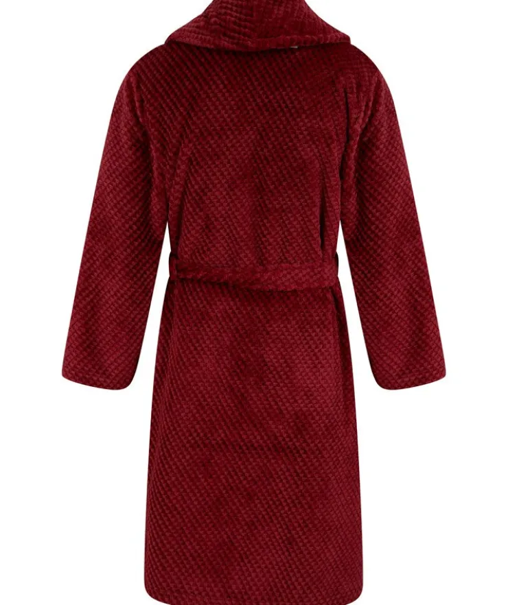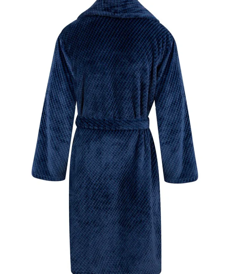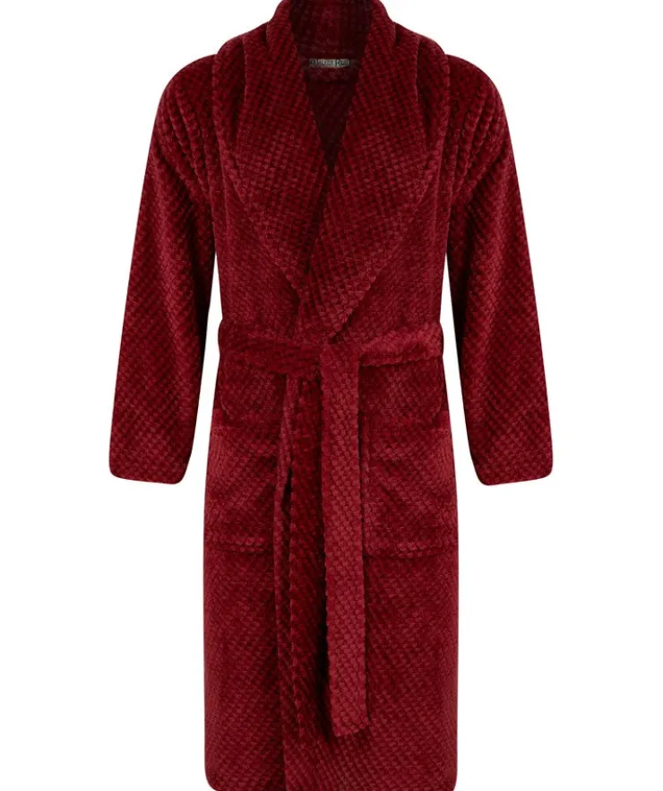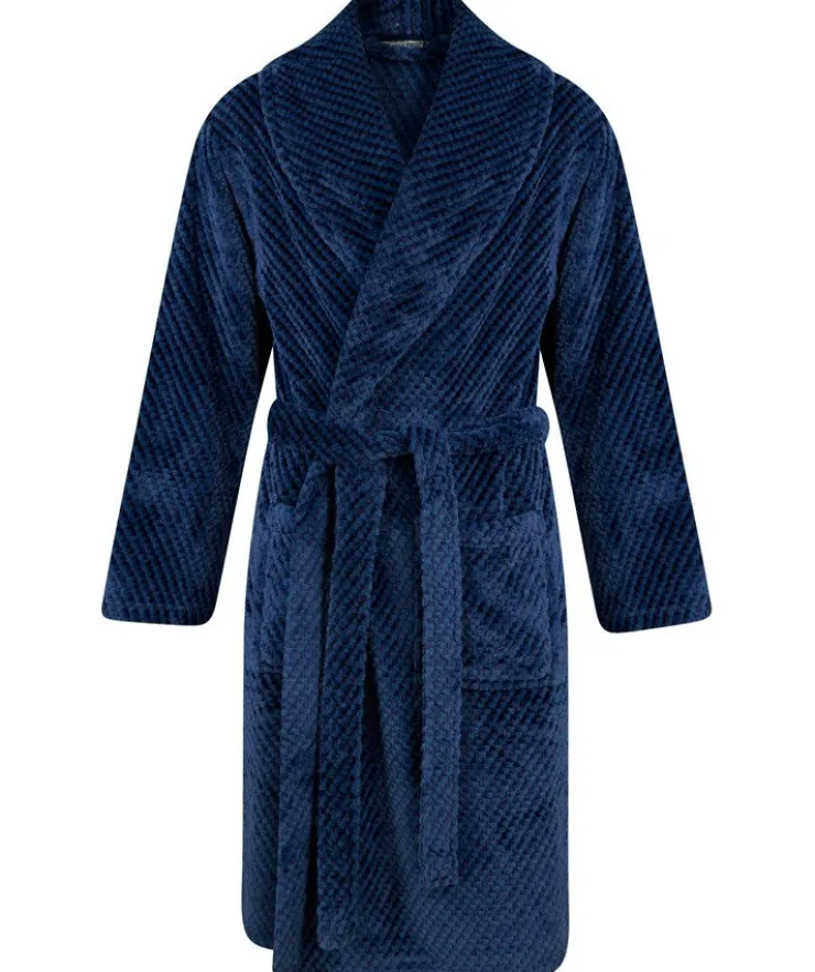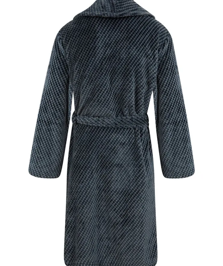 Designed in a super soft fabric this high-quality dressing gown is perfect for keeping warm this season.Made in 100% Polyester, this dressing gown styles a shawl collar with matching tie belt. Measuring 49” in length with long sleeves, the all-over shaved square jacquard check design is perfect to wear this season.