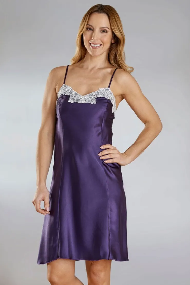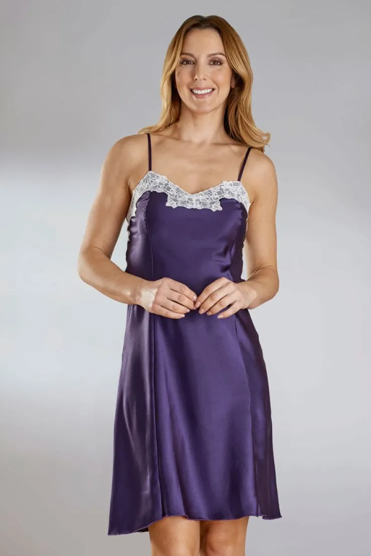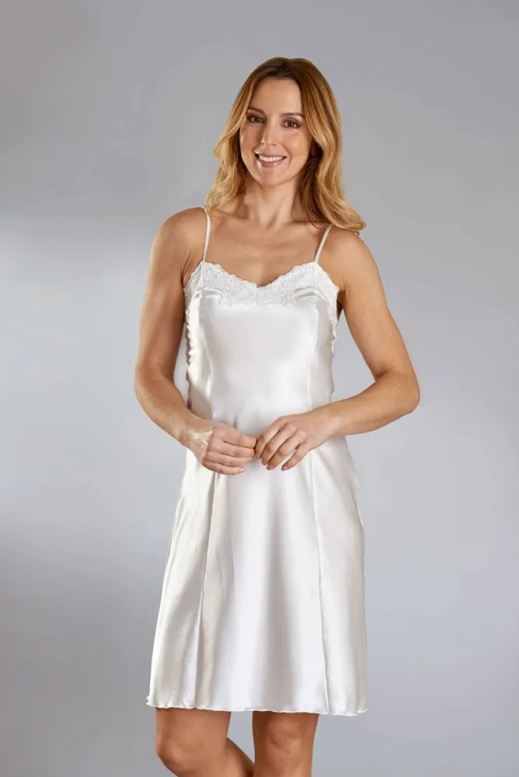 Gaspé 38″ Woven Satin strap Nightdress with a embroidered lace to the front of nightdress. Finished with an elasticated back for comfort.