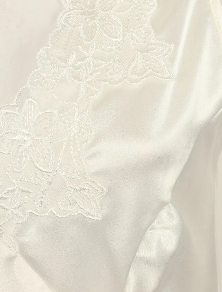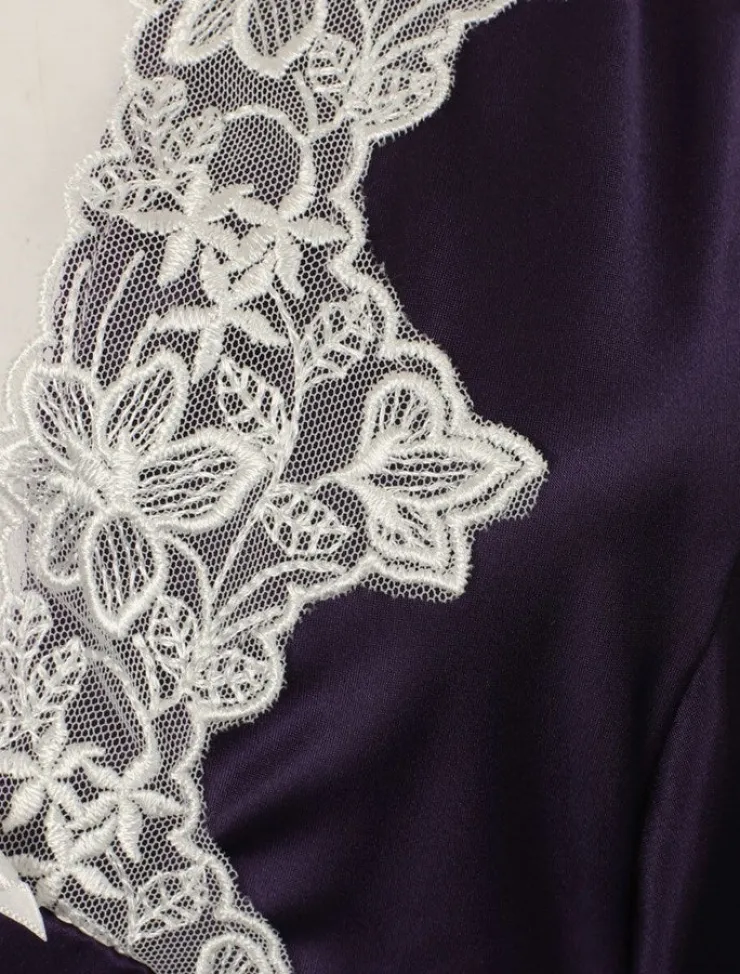 Gaspé 48″ Luxury Satin Nightdress with Lace Applique.
