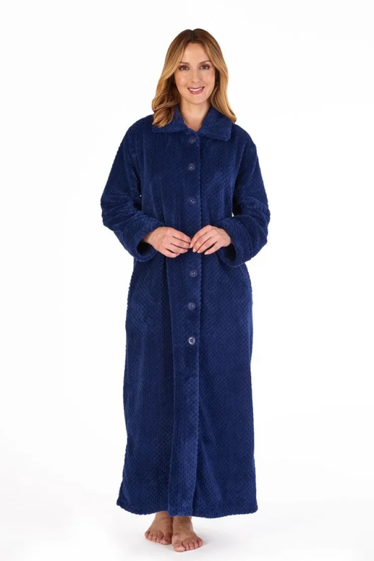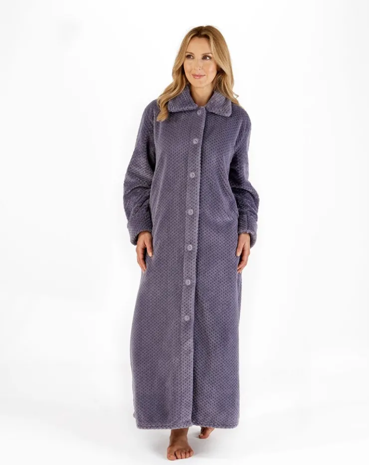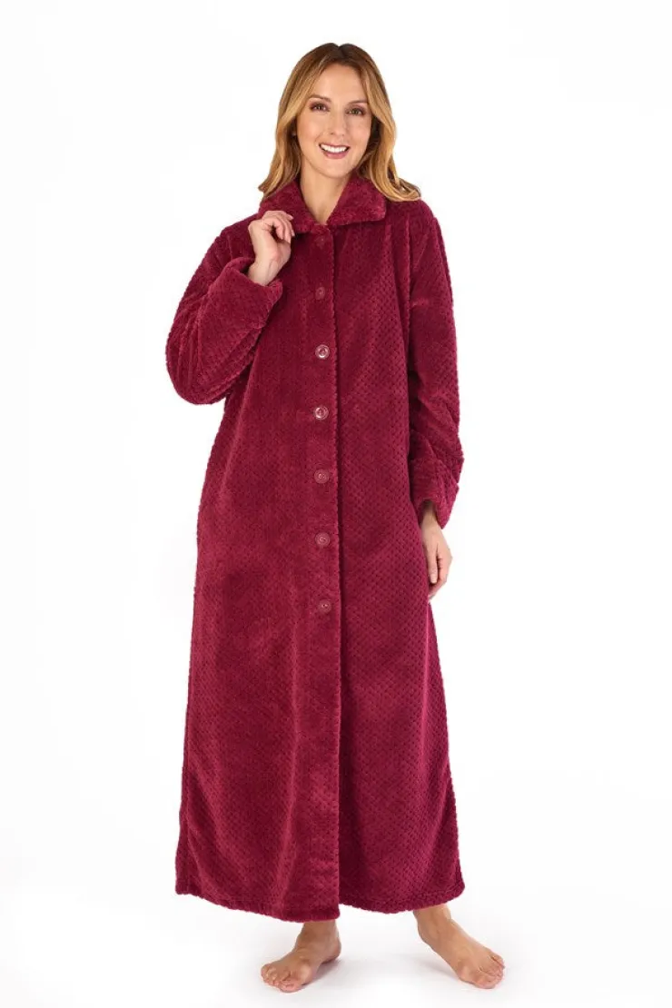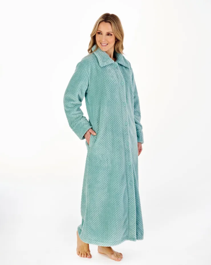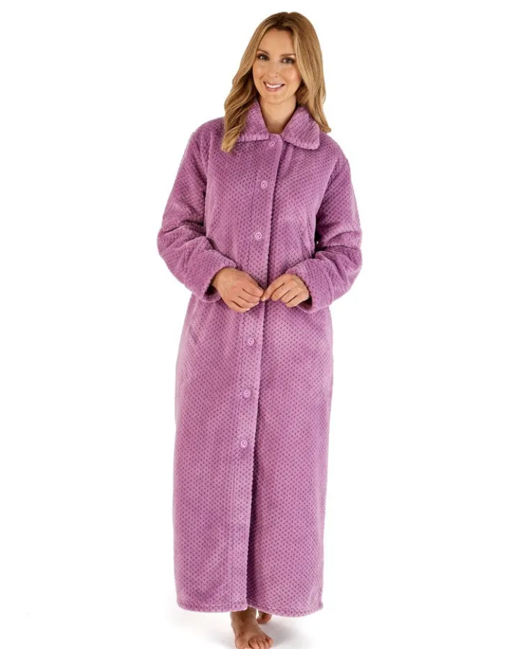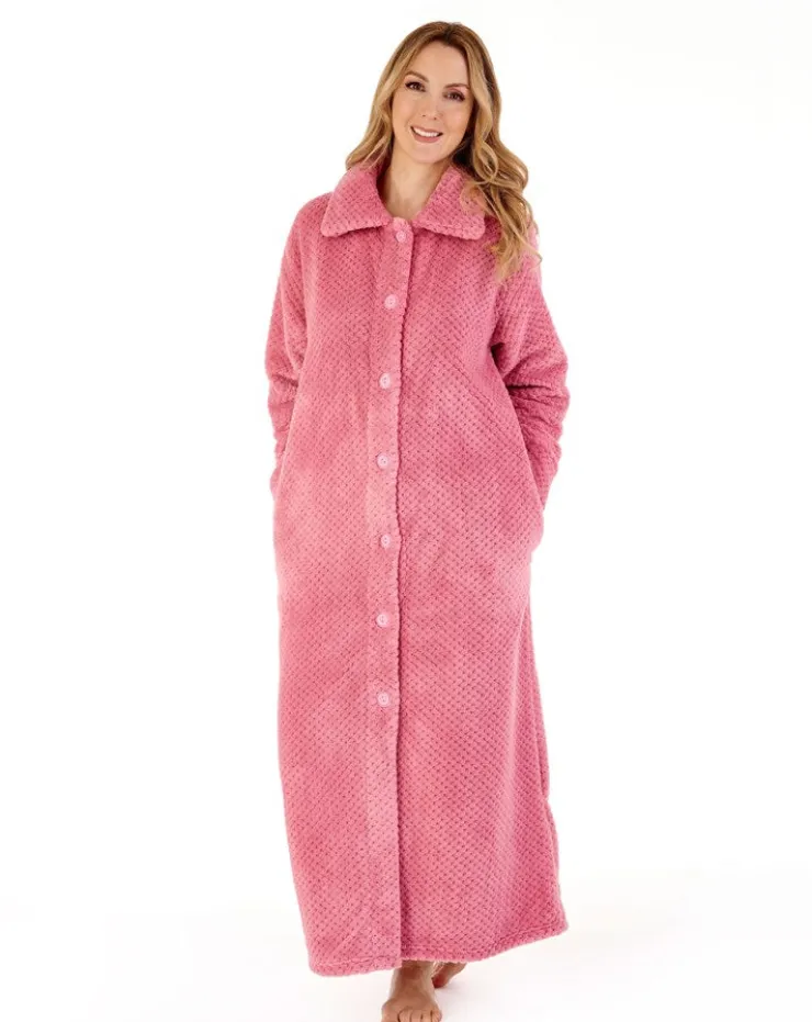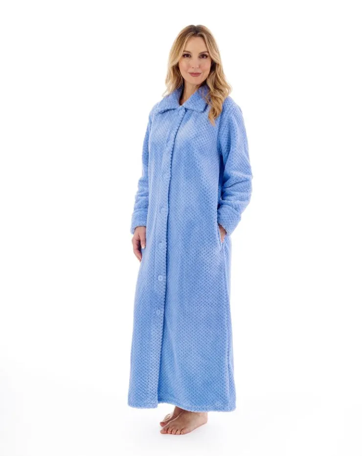 Made from a soft and plush luxury waffle fleece, our 100% polyester housecoat provides the ultimate in cosy comfort. With a 52″ length, long sleeves, and a button through fastening, this housecoat offers both style and warmth. The turnback cuffs and collar add the perfect finishing touches whilst the 2 concealed pockets offer convenience to this luxury style. Ideal to style with our co-ordinating nightwear ranges.