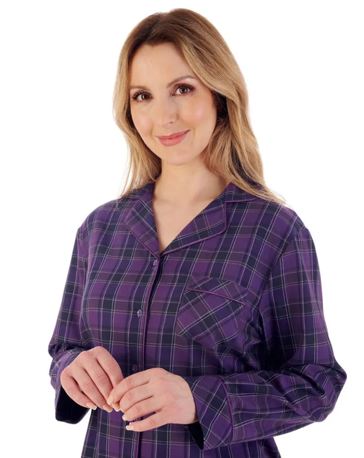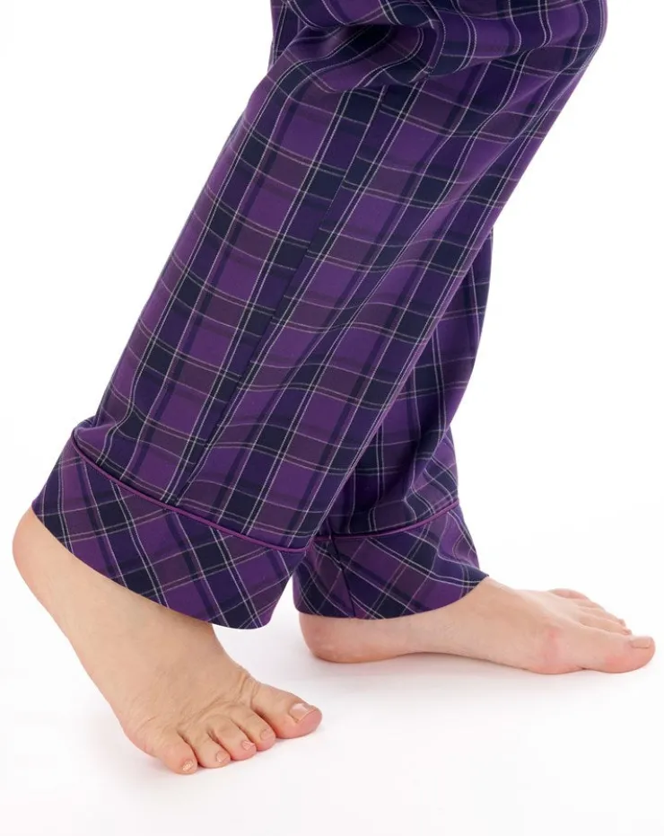 Our popular tailored style pyjama is designed in an all-over classic check. Detailed with a satin piping to the single breast pocket, centre front, collar, and cuffs. With an elasticated trouser waist and a 5-button front opening. This woven cotton fabric will keep you warm throughout the cooler months ahead with maximum comfort.